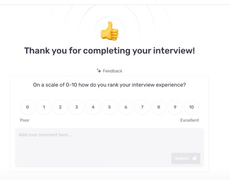 After you finish, you’ll see a Thank You message confirming your interview is complete.