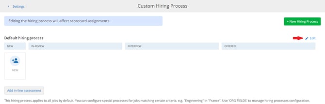 Next, navigate back to the Settings section and access the Hiring Process link within the Configuration section.
