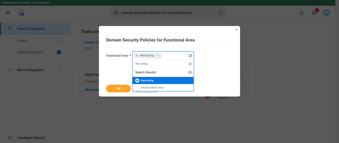 Fill out the Functional Area field with the Recruiting option, then click OK.