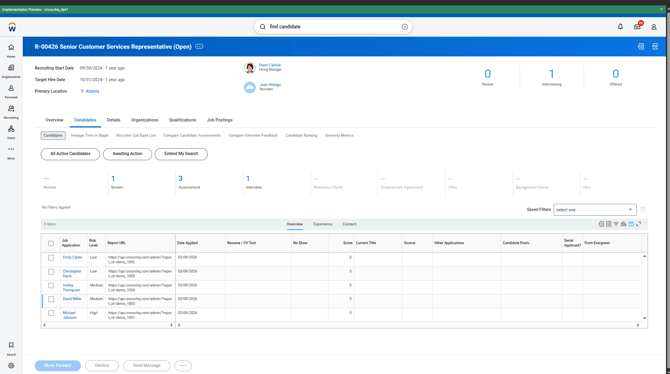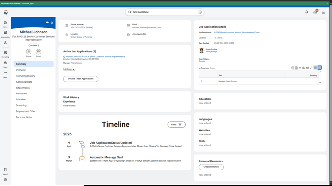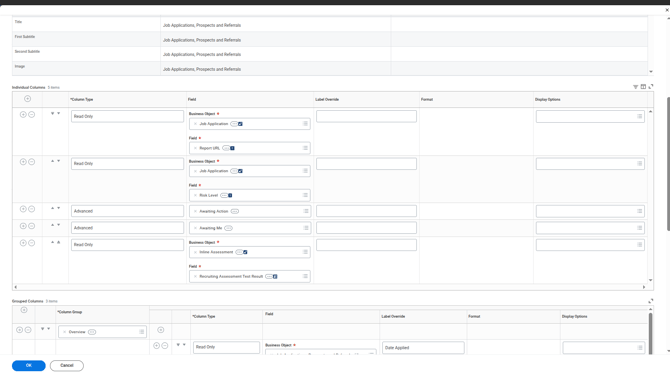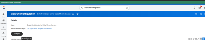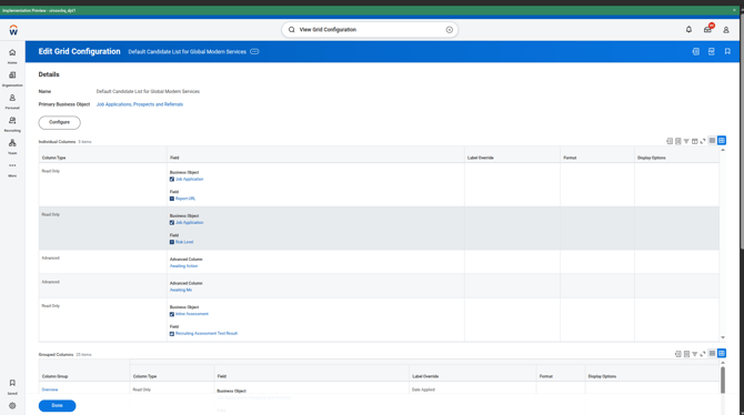 Open a Job Application or Candidate list and confirm that the new columns are visible. Adjust column order or visibility at any time via View/Edit Grid Preferences.