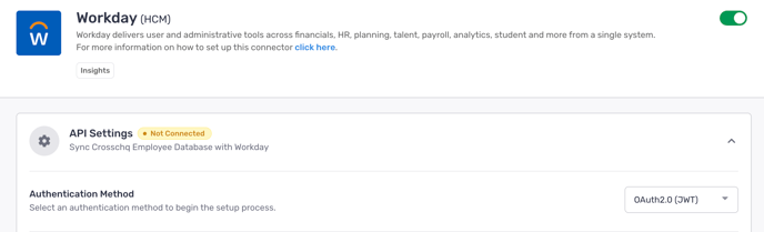 To begin the configuration, go to the Workday settings in Crosschq and select the Oauth 2.0 (JWT) option.